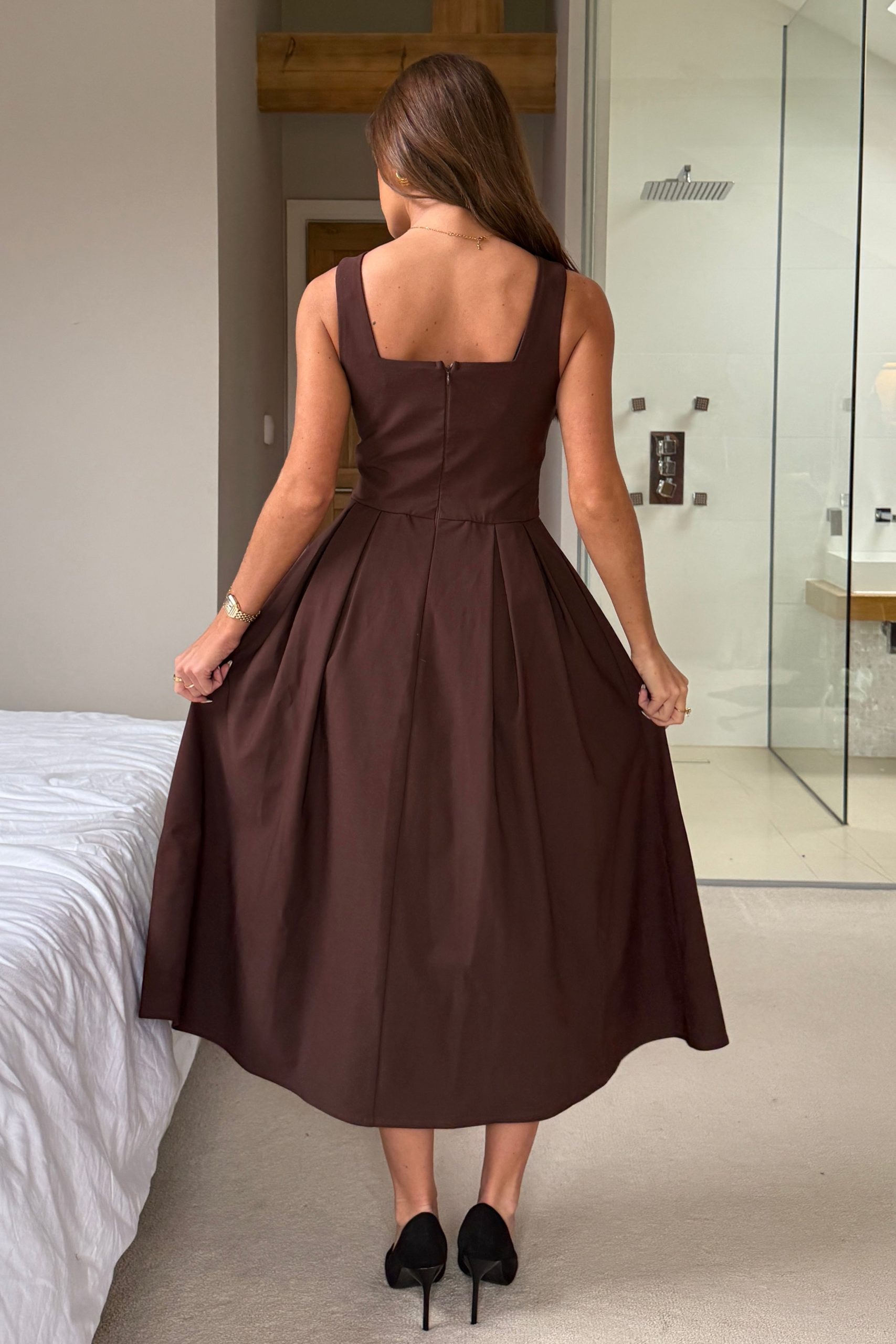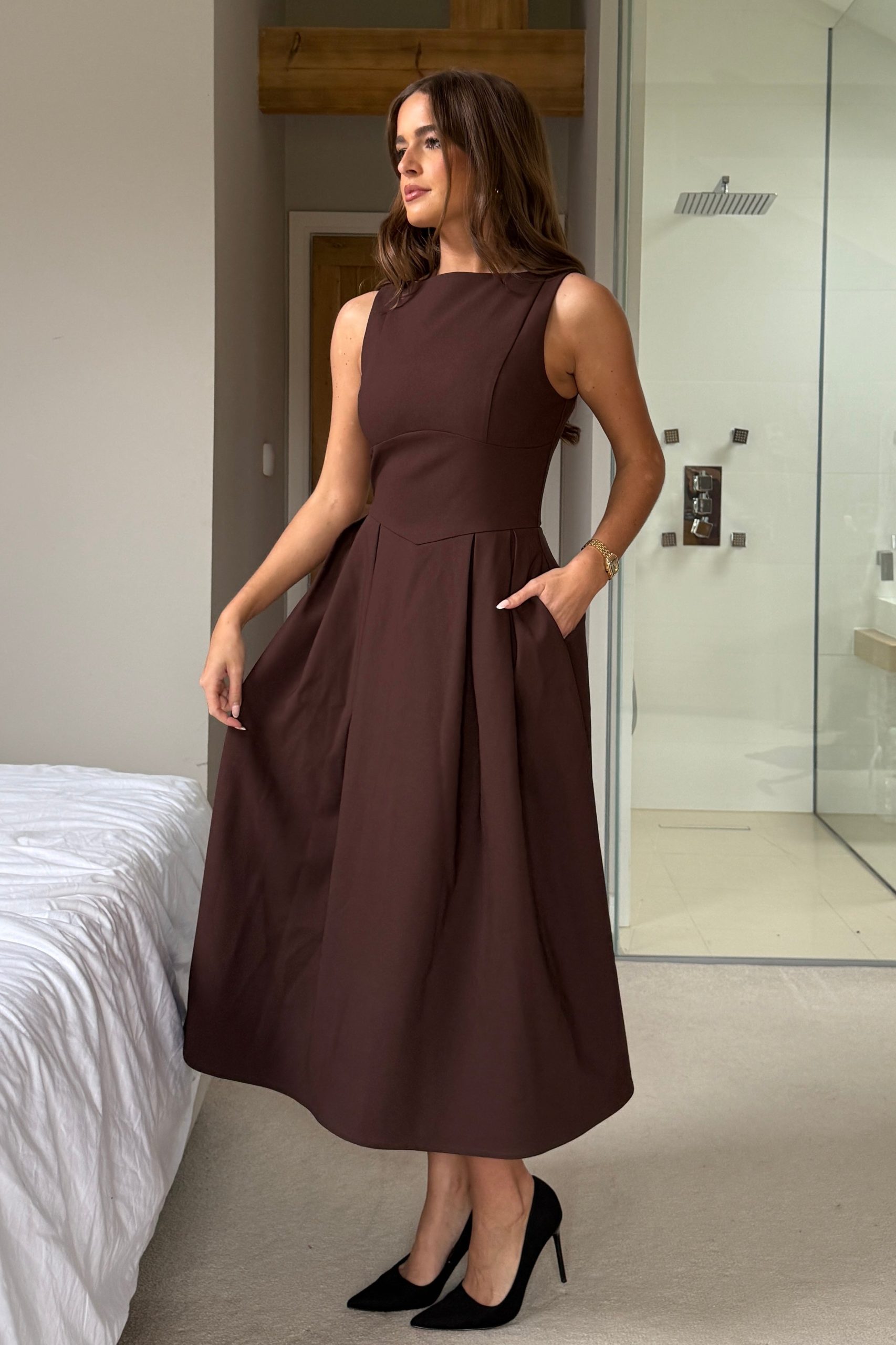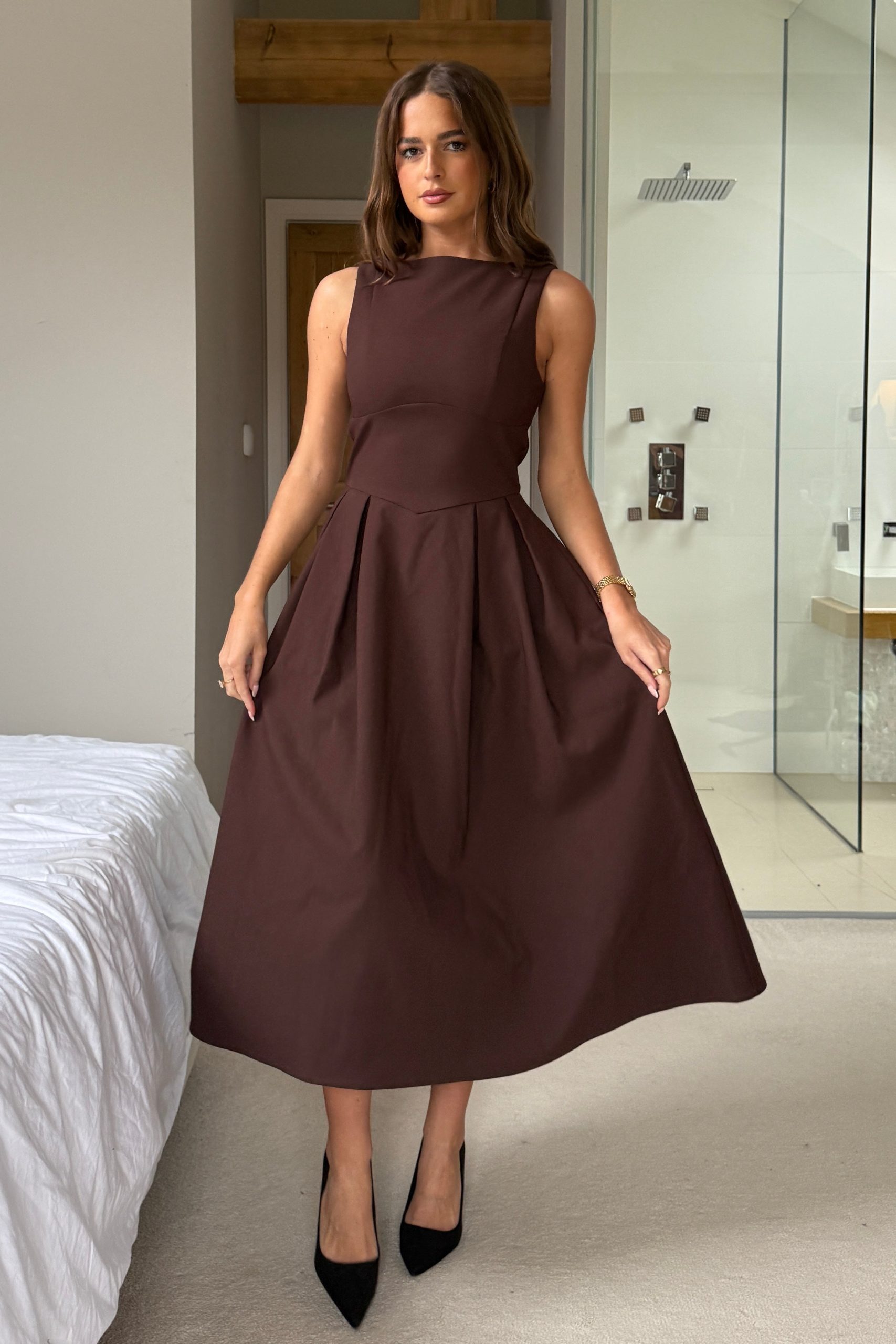 You name the occasion, we have the perfect dress. Crafted in a premium stretch fabric, Nesta effortlessly compliments every body. Beautifully flowing with a cinched in waist, this midi dress boasts a pleated skirt that creates an elegant sense of movement. For a timeless race day look, try styling yours with some simple gold earrings and strappy stilettos.The model wears a UK 8 and is 5’6′.